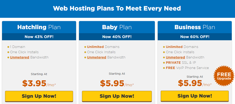 this time, Hostgator offers 3 different plans, each of which come with